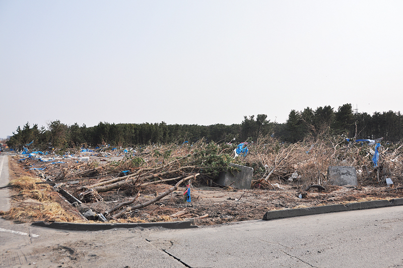 市川船溜まり付近の防災林の被害の様子。