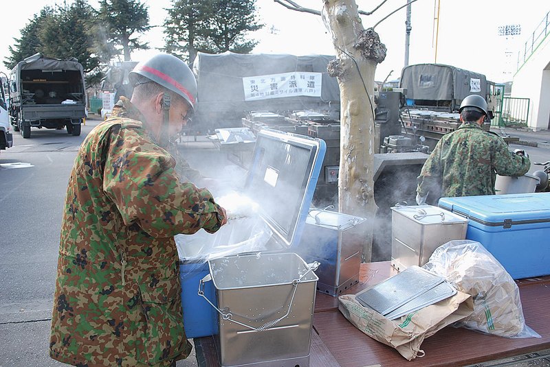 陸上自衛隊による炊き出しの様子。