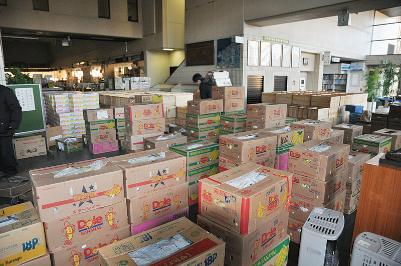 | 震災直後に市庁に届いた救援物資。 |