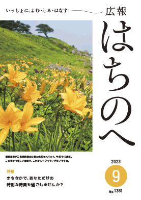 広報はちのへ令和5年9月号(8月20日発行) No.1381 更新日:2023年09月01日 一括ダウンロード 令和5年9月号 (PDFファイル: 9.7MB) 個別ダウンロード 9月号表紙 (PDFファイル: 1.5MB) まちなかで、あなただけの特別な時間を過ごしませんか? (PDFファイル: 3.6MB) はぐっとdays (PDFファイル: 1.9MB) 子ども・子育てインフォメーション (PDFファイル: 1.2MB) キラリ!学校自慢 (PDFファイル: 1.4MB) ここは、みんなの美術館 (PDFファイル: 1.3MB) イベントあらかると (PDFファイル: 2.3MB) 健康ガイド (PDFファイル: 809.0KB) お知らせ (PDFファイル: 2.6MB) 9月10日は「下水道の日」です (PDFファイル: 730.2KB) 海外の姉妹・友好都市を紹介します (PDFファイル: 2.4MB) 遺跡と景観の保護にご協力を (PDFファイル: 1.2MB) 知っていますか? 国民健康保険のしくみ (PDFファイル: 788.2KB) いのるん通信 (PDFファイル: 5.5MB) バックナンバーなど 広報はちのへバックナンバー 「広報はちのへ」への広告掲載 「広報はちのへ」の「お知らせ」ページには、有料広告を掲載することができます。 詳しくは、「広報はちのへ」への広告掲載をご覧ください。 この記事に関するお問い合わせ先 総合政策部 広報統計課 広報広聴グループ〒031-8686 青森県八戸市内丸一丁目1番1号 市庁本館4階電話:0178-43-2248 ファックス:0178-47-1485広報統計課へのお問い合わせフォーム