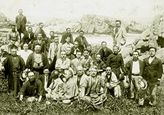 藤井(中央で腕組み)ら藤門会と種差海岸で記念撮影をする藤田(昭和6年)
