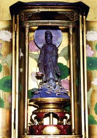常現寺(じょうげんじ)には、異国情緒あふれる魚籃観音菩薩像があります。この像は、明治維新の際、八戸出身の高僧西有穆山(にしありぼくざん)禅師が入手したものを郷里の常現寺に安置したもので、観音像は、支那公趾国(しなこうしこく(安南(あんなん)―現ベトナム北部))からもたらされたものと伝えられており、当寺の秘仏となっています。